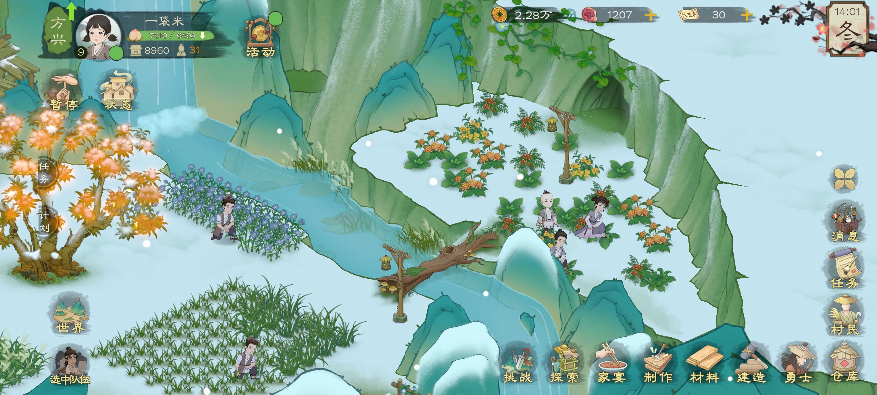 ps :在商人那买点种子啥的,像是蔬菜大豆种子进行种植,增加食物种类的多样性,因为你食物种类样性越多,丰盛度也会越高,能增加的经验值啥的也更高