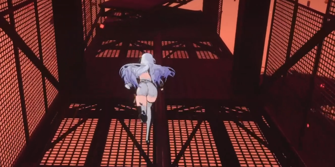 越过缝隙继续往前走,前方会看到一个红色的铁笼子,准确来说应该是铁管道搭建成的结构。爬到铁笼子上面站稳,然后从笼子顶部的木板往回跳。跳上去之后会落在一根管道上面,沿着管道走到尽头,那里有一根石头柱子。