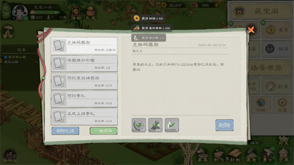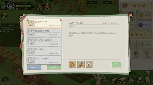 奖励:铜钱x100、基础食物x200、跌打散x3