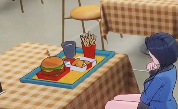 大家在这里可以和店员互动,一旦在互动之后就会触发一个新的剧情。这就是购买的剧情,玩家在购买的界面可以挑选自己所喜欢的食品,另外还有一些有趣的场景,例如交谈,还有用餐。在这里玩家可以选择消费,在经过消费之后也可以迅速的恢复角色的激励数值,这就是游戏中主要的一个休闲场所玩法。