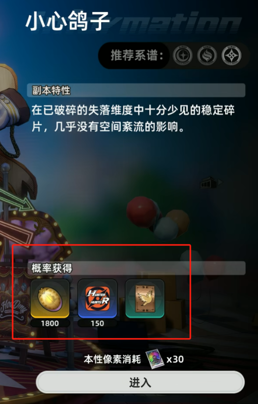 当我们前期做完一些探索都市异能的任务之后,就可以解锁新的副本了。这个副本就叫做小心鸽子,有一个前期的副本对于还是新手的我们肯定有一定的难度。不过他没有什么系谱上的要求,所以对我们来说就可以随便上阵一些角色,没有什么局限性。