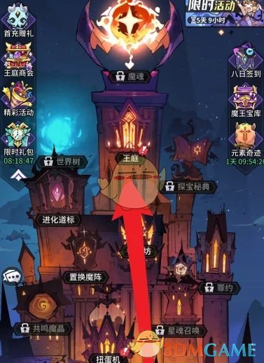2、接着在王庭中,点击中间下方的魔王;