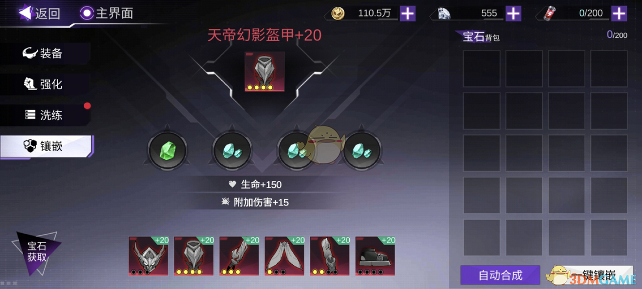 2、宝石镶嵌:可将拥有的宝石镶嵌到已打孔的装备上,不同类型的宝石能为装备提供不同的属性提升,如攻击、防御、暴击等,进而提升武装的整体战斗力。