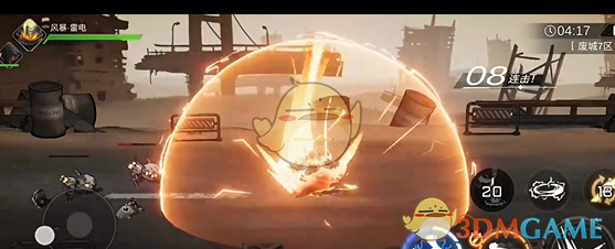 4、三技能:风暴雷电如疾风般跃上高空,连环斩击,释放出凌厉的雷电攻击地面上的敌人。最后,他会进行一次力量十足的下劈斩击,对地面单位造成致命伤害。这个技能适合在近距离战斗中使用,能够造成大量的单体伤害并附带击退效果。