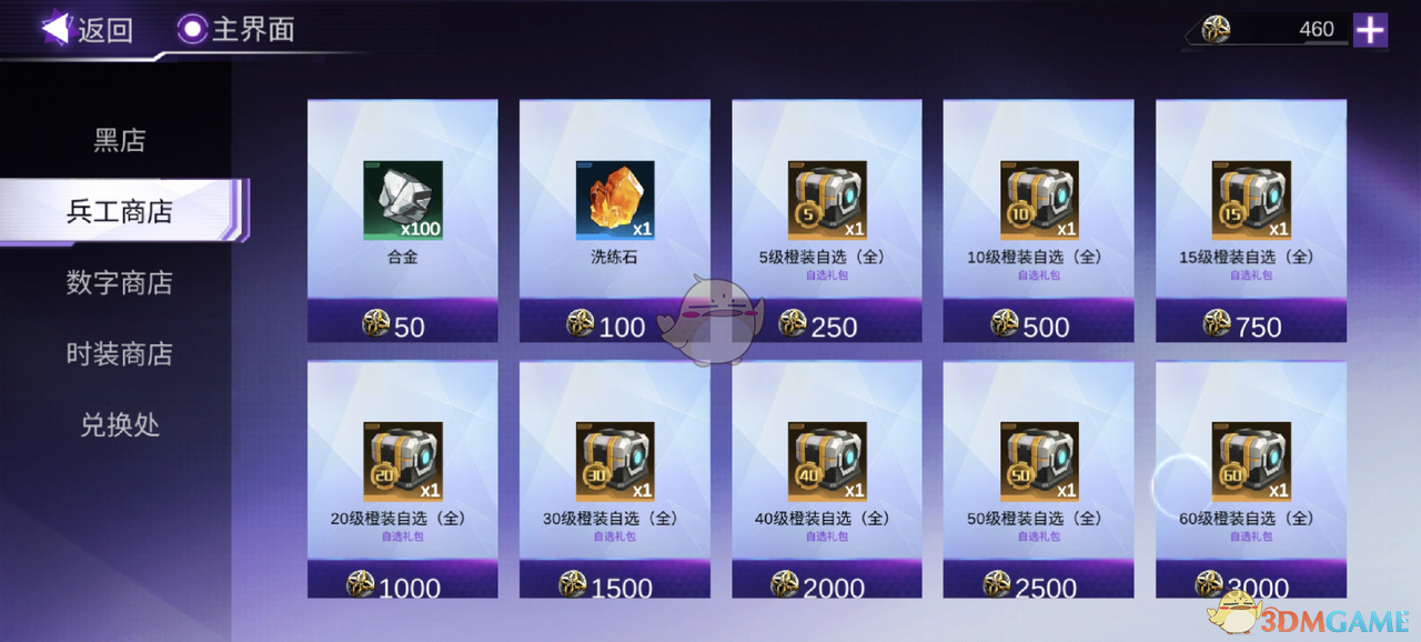 2、兵工商店可以拿秘银(材料)兑换极品装备跟合金,洗炼石等,使武装战力进一步提升。