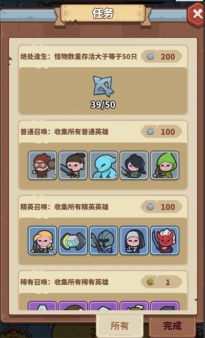 幸运祈愿:领主大人可以通过花费相应幸运币,有策略的选择召唤蓝/紫/金品质的英雄。品质越高;所需幸运币越高;召唤成功的概率越低。
