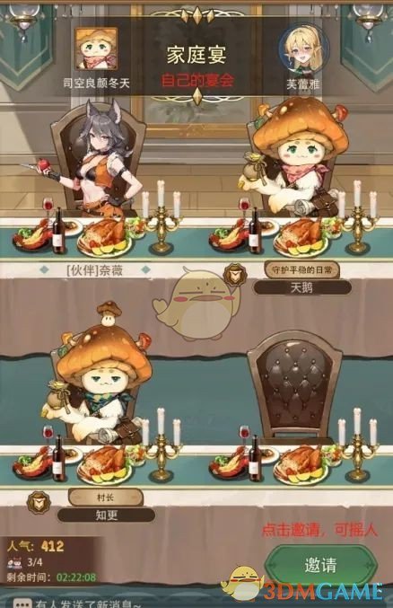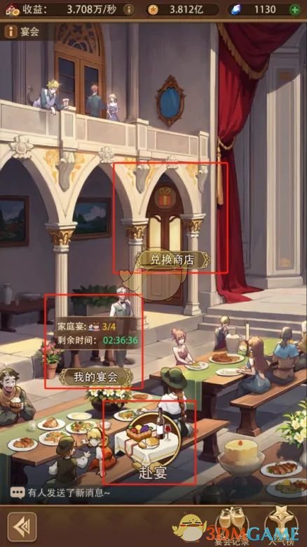 宴会可以理解为请客吃饭,需要一个由头或者消耗道具,比如庆祝获得特定家人、主角特定等级提升,消耗特定道具可以直接举办宴会。