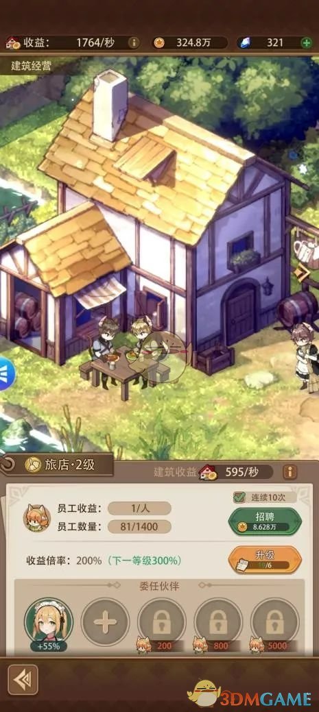 种田游戏田和店当然是必有的要素了,建筑的基础收益取决于多种方面,例如建筑等级,员工数量,伙伴经营能力,迷宫等等。