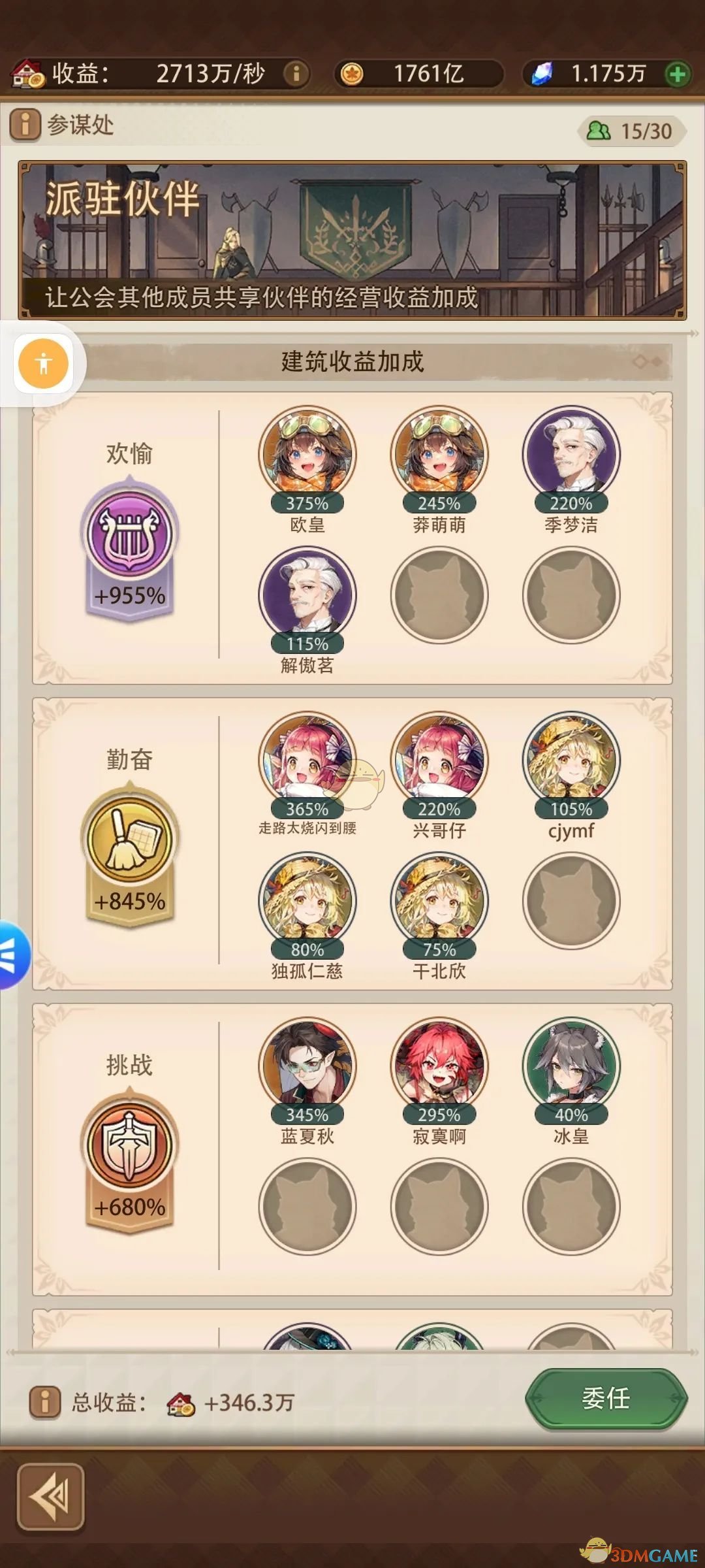 【建议】平均升级建筑等级,员工优先注重开格子塞伙伴,可以重点提升一下工会参谋处收益最高的建筑。