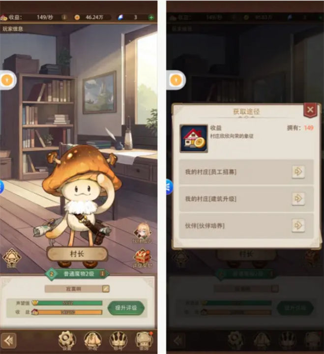 提升主角等级需要声望值和村庄收益的支持。声望值是非常稀缺的资源,可以通过推进关卡、参与龙城游玩和关卡内的事件来提升。