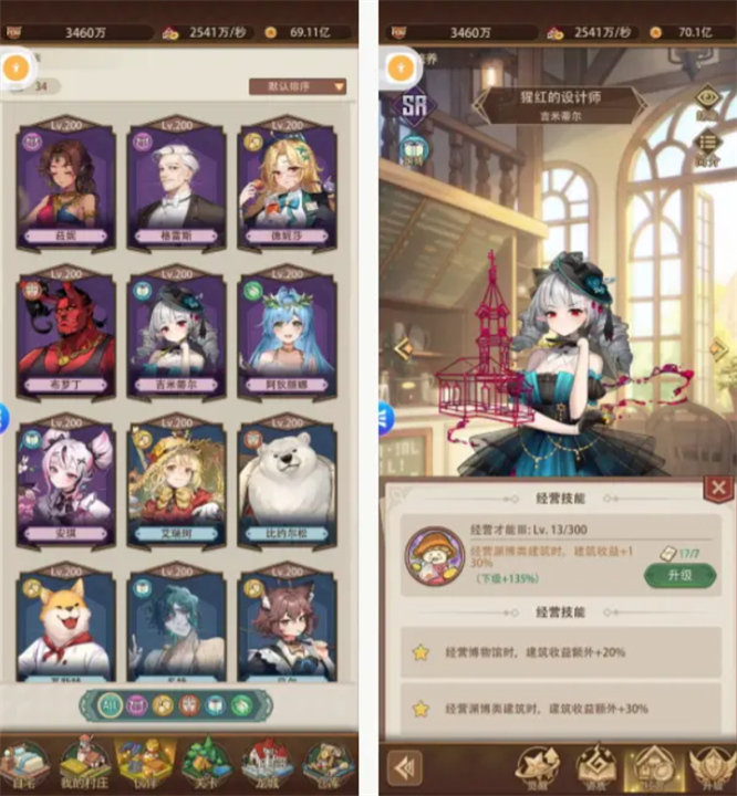 先将绿、蓝、紫色卡的伙伴提升到200级,这有助于解锁经营技能(分别在50/200级解锁)。