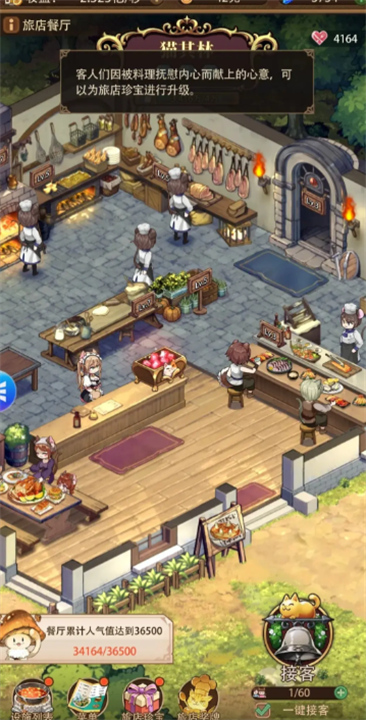 餐厅:提供建筑加成,熟练度提升菜品等级,增加百分比收益。厨具图纸可以提升设施等级,增加人气和熟练度。