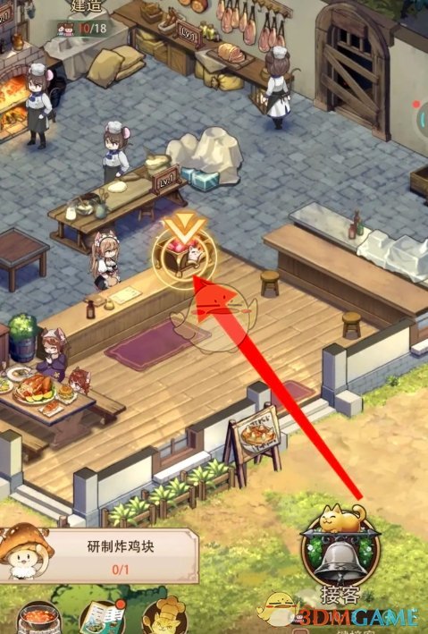 2、接着在餐厅页面,点击餐桌上的指引箭头按钮;