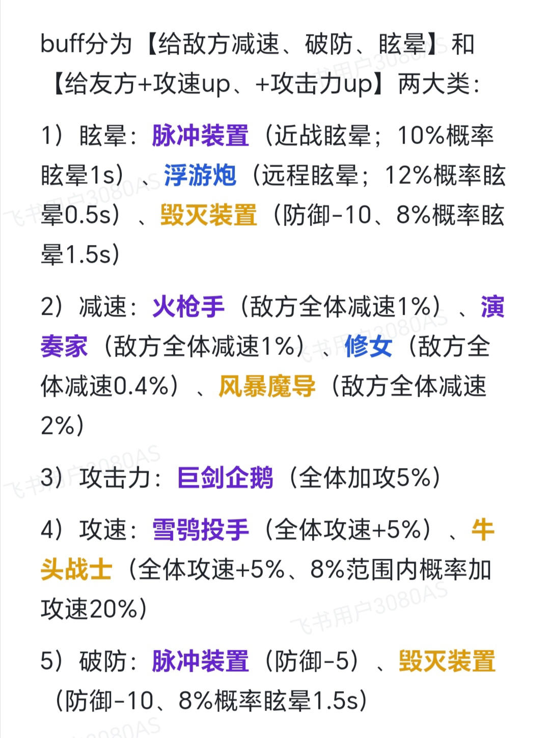 最后,附官方攻略里的buff表用以参照如何取舍:
