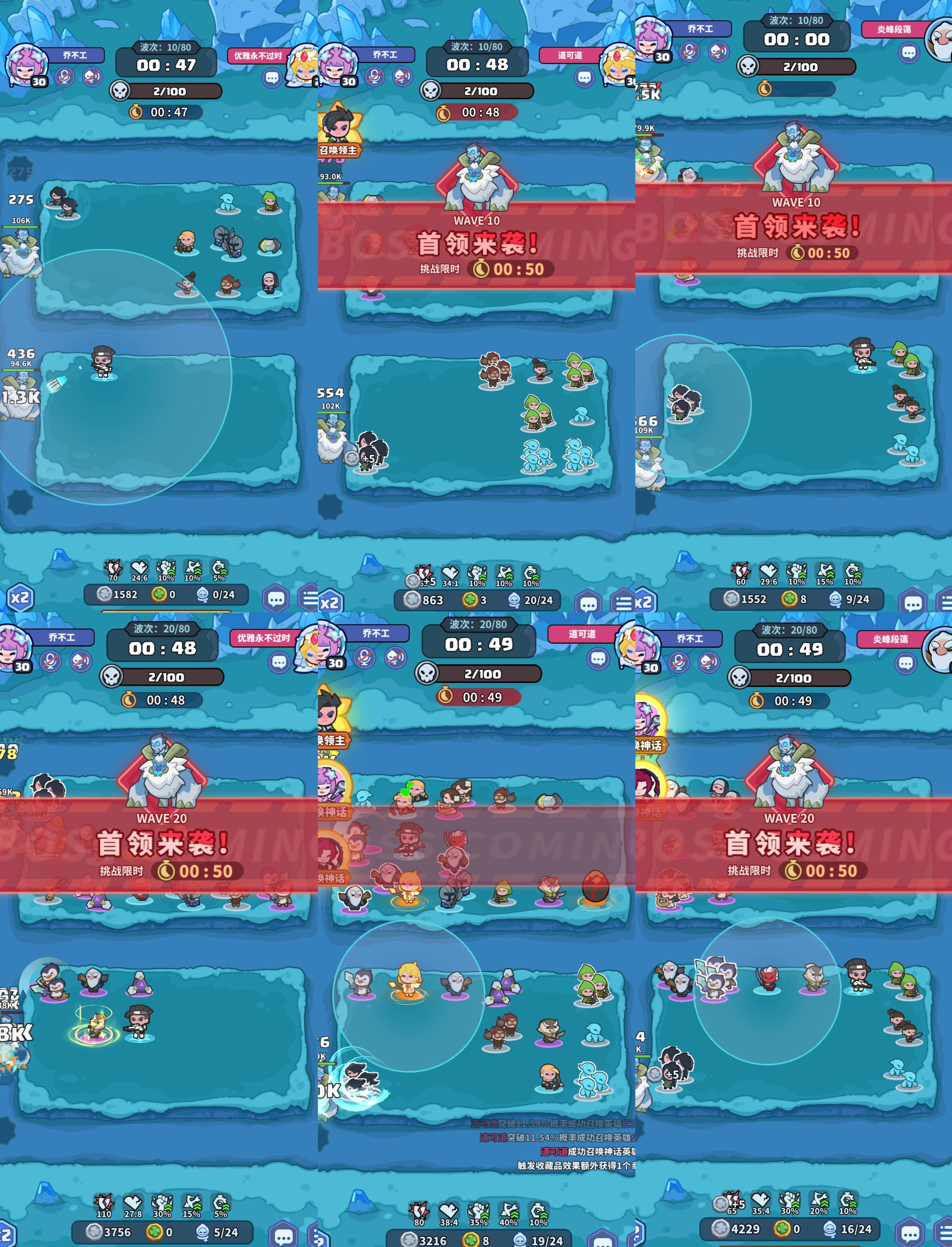 所以单人局,越到后来,越没有发展经济的时间。总共50波,考验的就是迅速出主C的速度和主C本身的强度,很难有足够时间攒银币和爆幸运币。