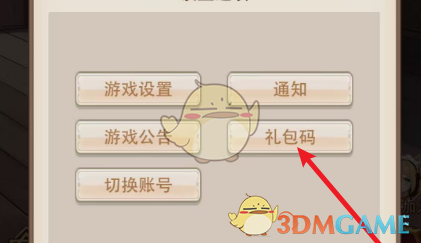 2、然后在设置页面下,找到并点击礼包码选项