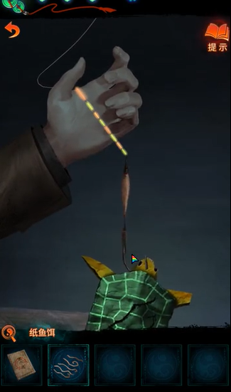 2、接着使用在渔夫那获取的纸鱼饵钓鱼,即可钓到一只绿色的乌龟