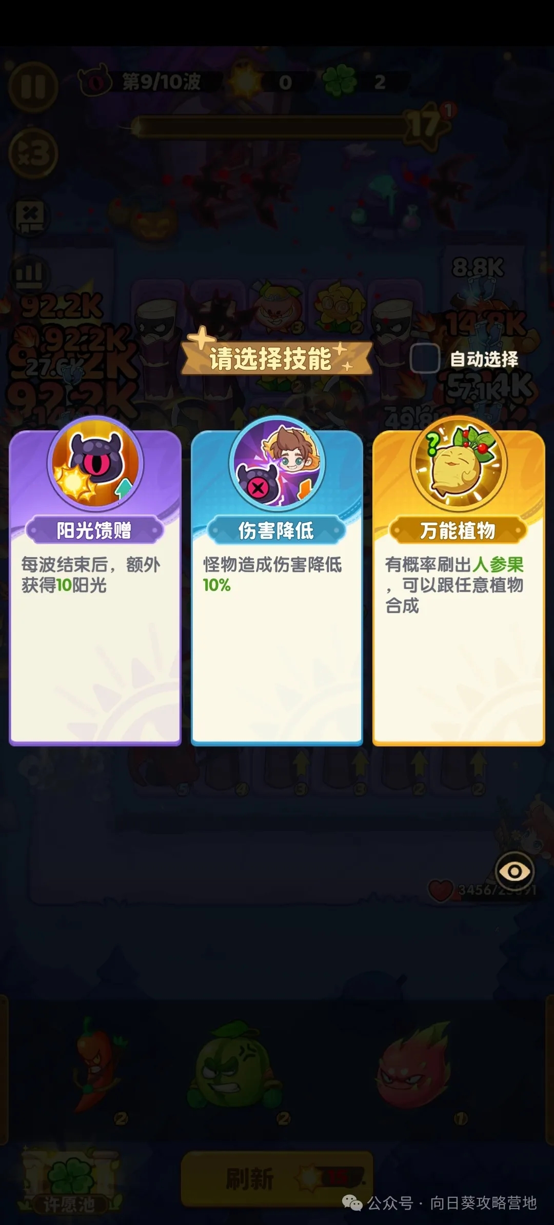 了解完了关卡特点以后,我们进去关卡里面,每达成一波,就会出现buff选择,这时候我们要根据所带的植物以及关卡特性来选择buff