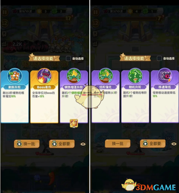 比如说,在第九波了,那么肯定是先选boss伤了。那么在第六波肯定是人参了。但是如果减速不够那么选减速。这一项没绝对的。