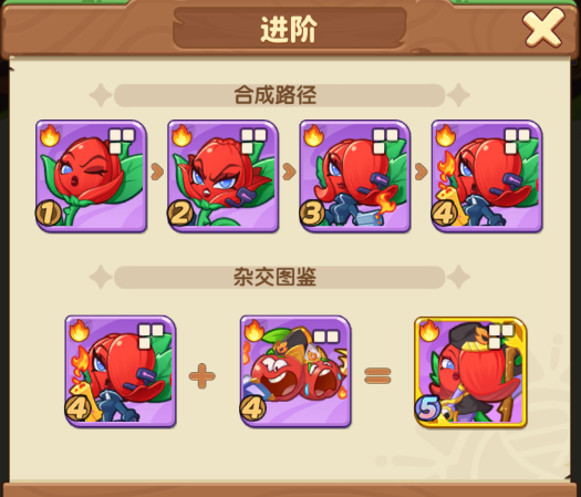 所有火系植物属性 +2.5%,可与樱桃无常杂交合成玫瑰无常