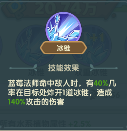 与蓝莓法师相邻的水系植物攻击力+8%,最多叠加4层