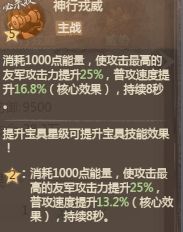 消耗1000点能量,使攻击最高的友军攻击力提升25%,普攻速度提升13.2%,持续8秒。该效果可显著提升核心输出僚属的输出能力,尤其适合单核输出阵容。