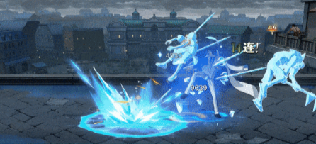 技能方面他的一技能也就是平a技能,这技能分为5段,这五段的攻击距离非常的远而且带有空中攻击,此外攻击第四段还带有冻结这种强控制的效果,命中后可以直接控制敌人稳定打出最后一段伤害。