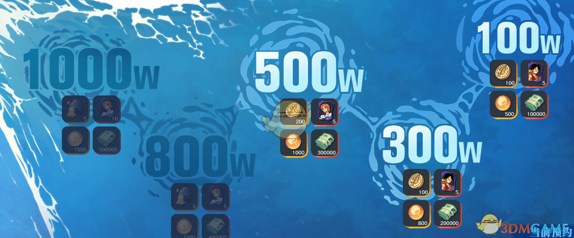 金币*100、路飞*5、加固精华*800、贝里*200000