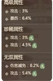 ①优先选择:伤害加成、爆伤、攻击百分比、威仪