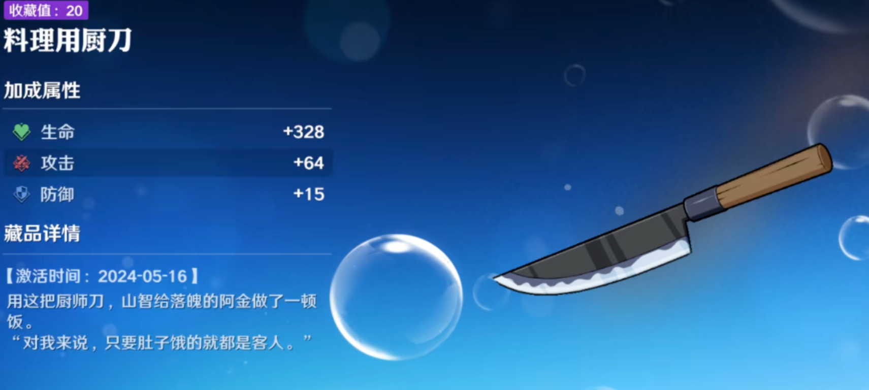 进门左手可以看到山治的料理刀,会有拾取按钮。我们点击即可