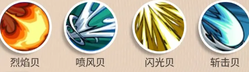 烈焰贝、喷风贝、闪光贝、斩击贝。