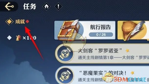 2、接着在任务页面,点击上方的成就;