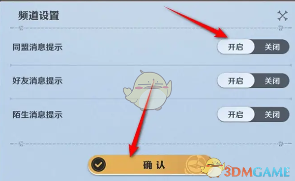 答:在世界消息设置页面找到频道,选择同盟消息,点击开或者关按钮即可。