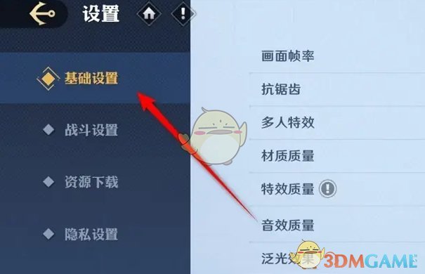 2、在设置功能页,点击左侧上方的基础设置;