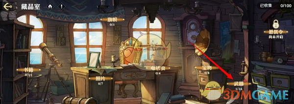 3、接着来到藏品室,点击右下角的武器选项;