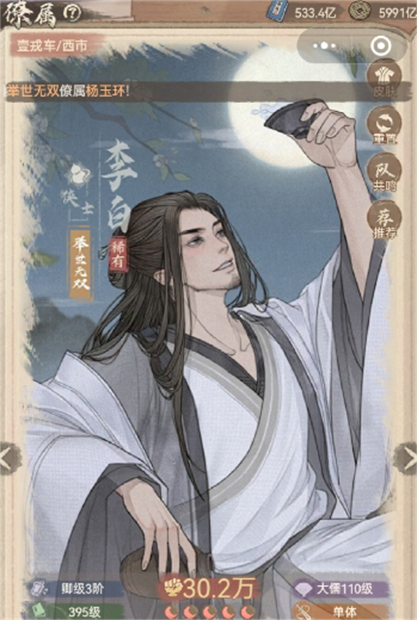 搭配建议:为了最大化李白的输出,推荐搭配法师类僚属,如王昭君,能够提供额外的伤害加成,帮助李白在战斗中打出更多伤害。