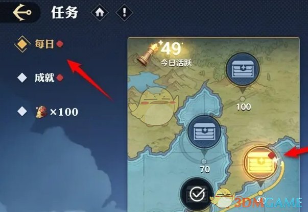 2、来到任务页面后,点击左侧的每日,然后进入每日活跃进度页面;