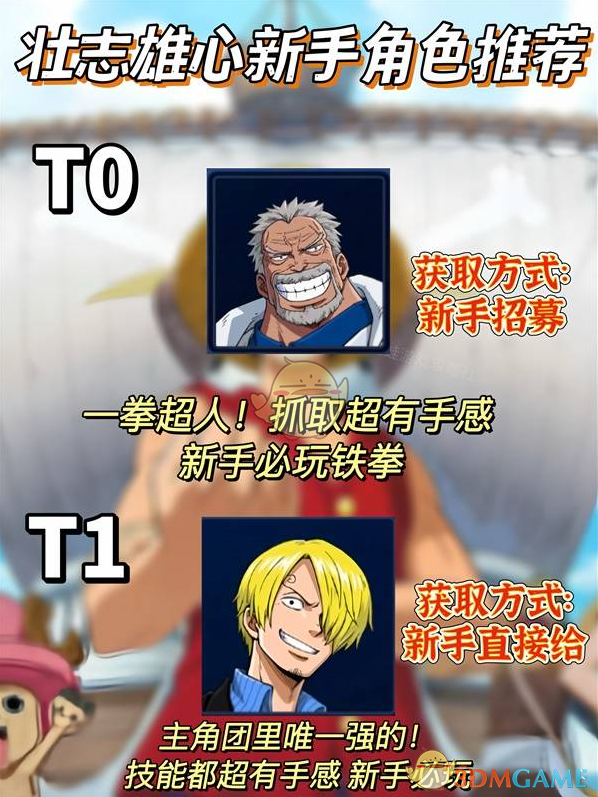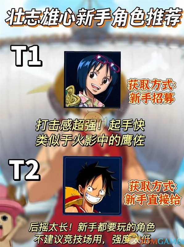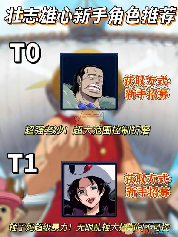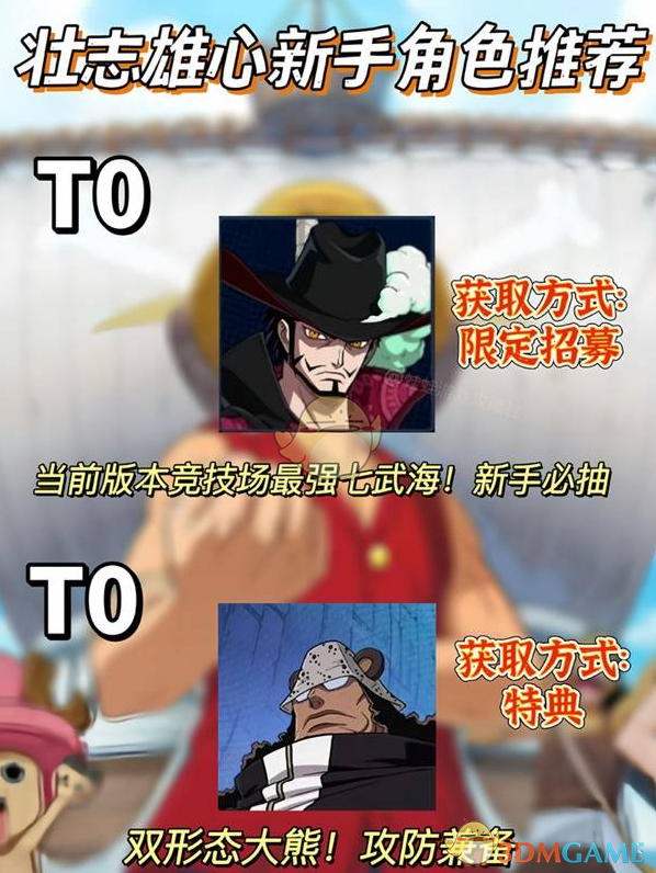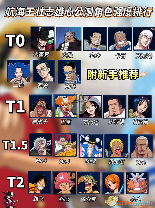 1、级别T0:剑豪米霍克、神秘大熊、沙漠之王老沙、铁拳卡普、雷神艾尼路、轻盈二指、无情的瓦帕、技艺高超的Mr.3