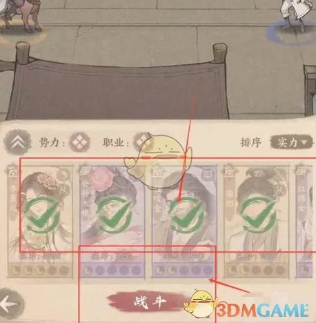 3、进入到决战页面,需验证对应的僚属,在下方点击战斗,成功击败落榜的考生即可。