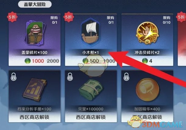4、在冒险商店内,选择小木船进行购买;