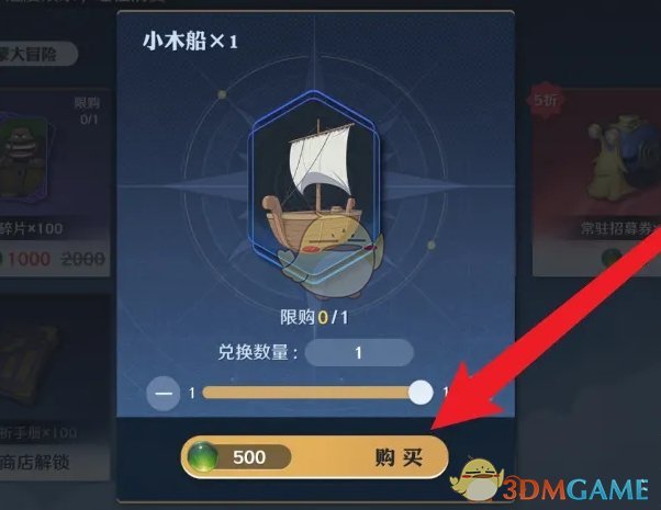5、最后花费500个货币点击购买获得即可获得小木船;