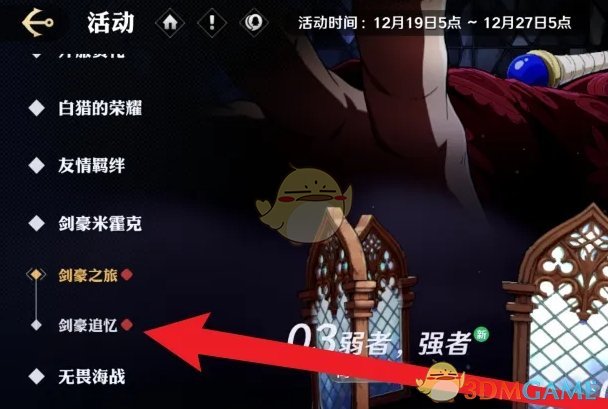 2、接着在活动页面,点击左侧的剑豪之旅,选择剑豪追忆;