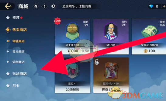 1、首先我们需要进入到游戏主页面,点击商城选择左侧的玩法商店进入。