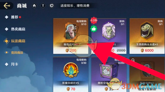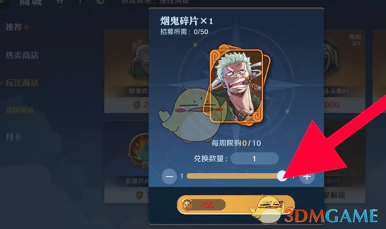 2、在玩法商店的列表栏中即可找到烟鬼碎片,售价是200金币。