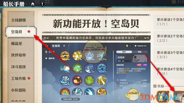 答:在船长手册内,找到空贝岛手册,点击右下角的奖励进行领取即可。