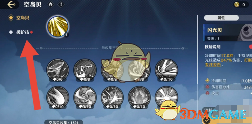 2、进入到空岛贝界面,在左侧的菜单导航栏点击第二项援护技进入。