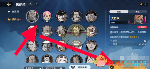 3、进入到援护技的选择页面,选择对应的技能,在右下角的位置点击解锁技能即可使用。