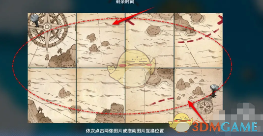 4、依次点击两张图片或者拖动图片互换位置即可完成拼图,修复成功可获得标识藏宝地点的藏宝图。