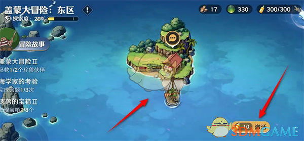 3、前往海域探险玩法后,点击海域冒险商店,点击激活,消耗10个道具货币即可完成激活;