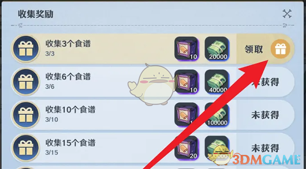 4、最后在食谱收集奖励页面,点击右侧的奖励进行领取,即可获得奖励。